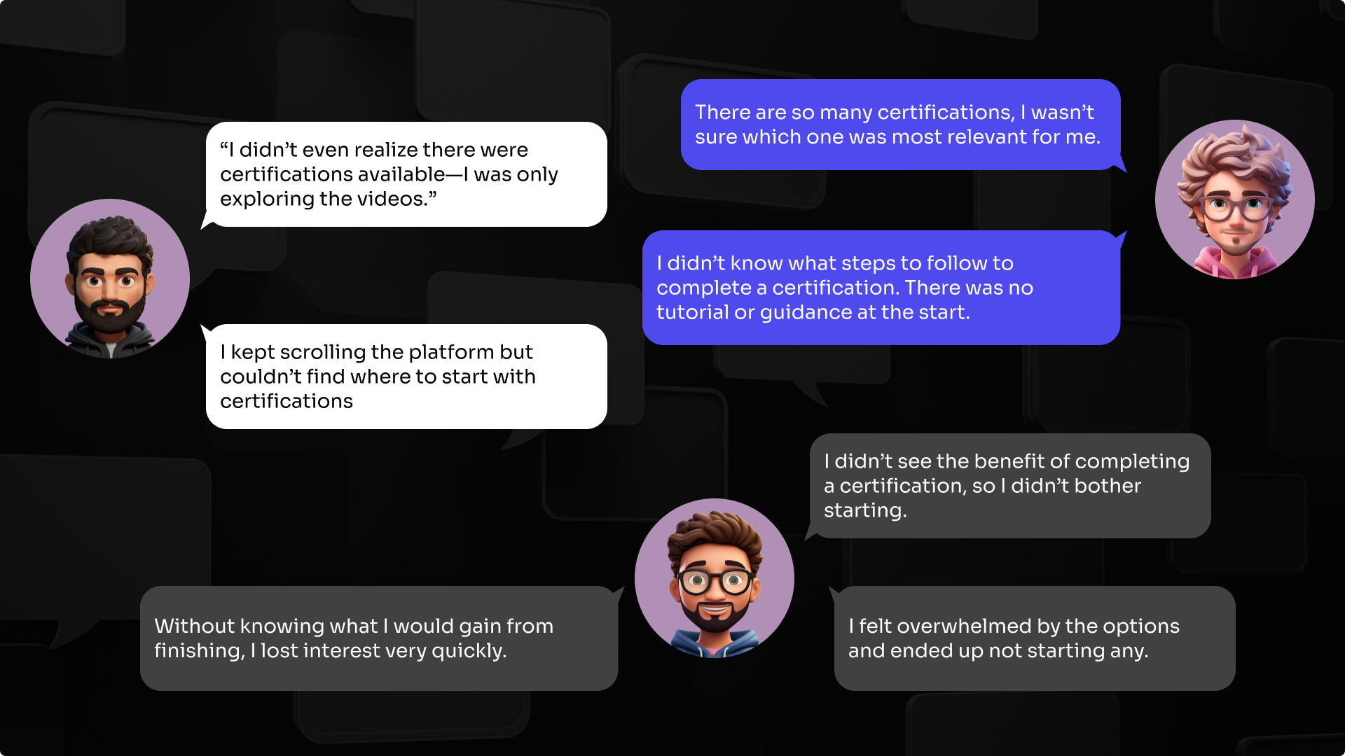 - Difficulty choosing: Users didn’t know where to start among so many certifications.